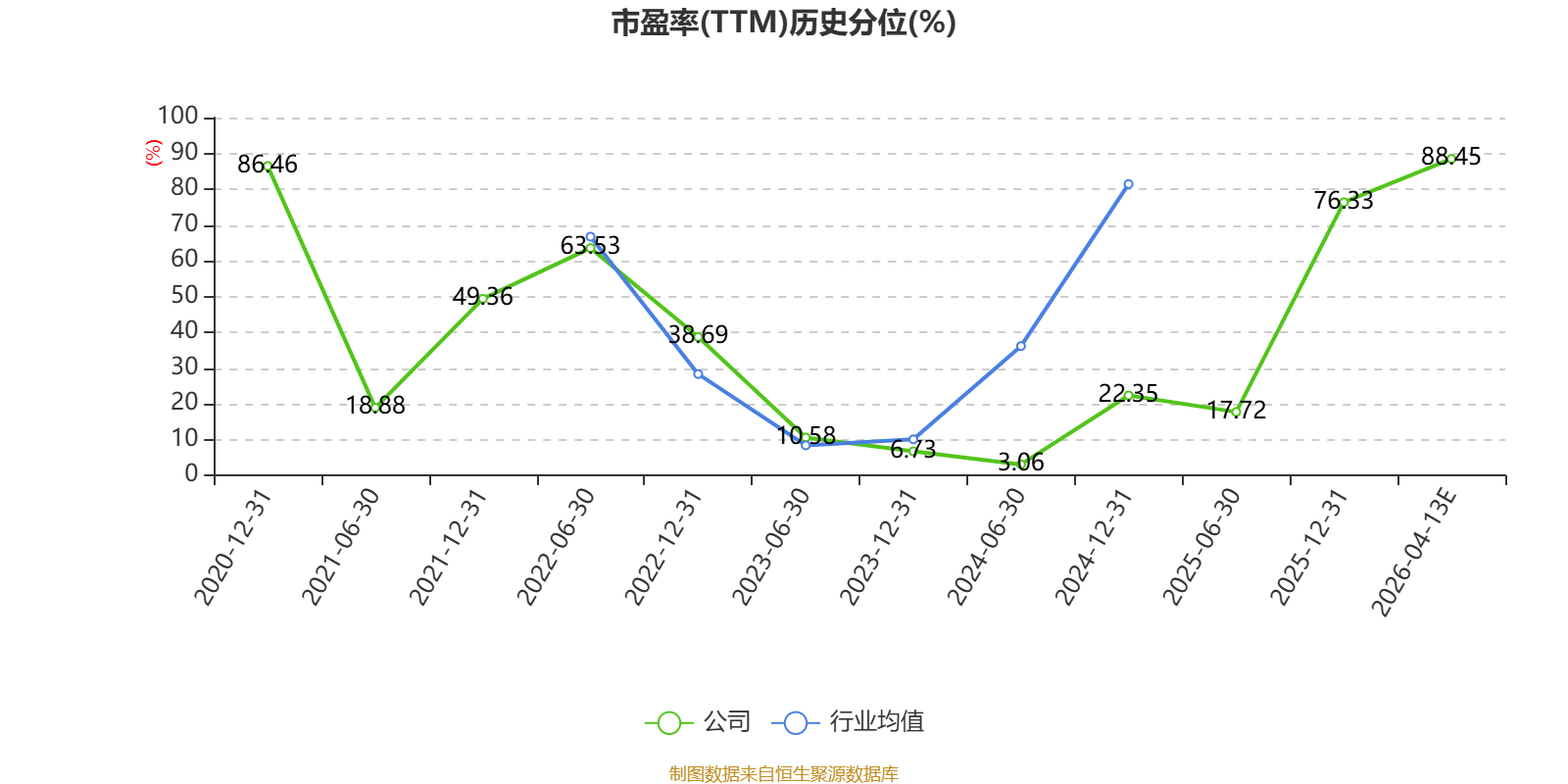 以本次披露业绩预告均值计算,公司近年市盈率(TTM)图如下所示: