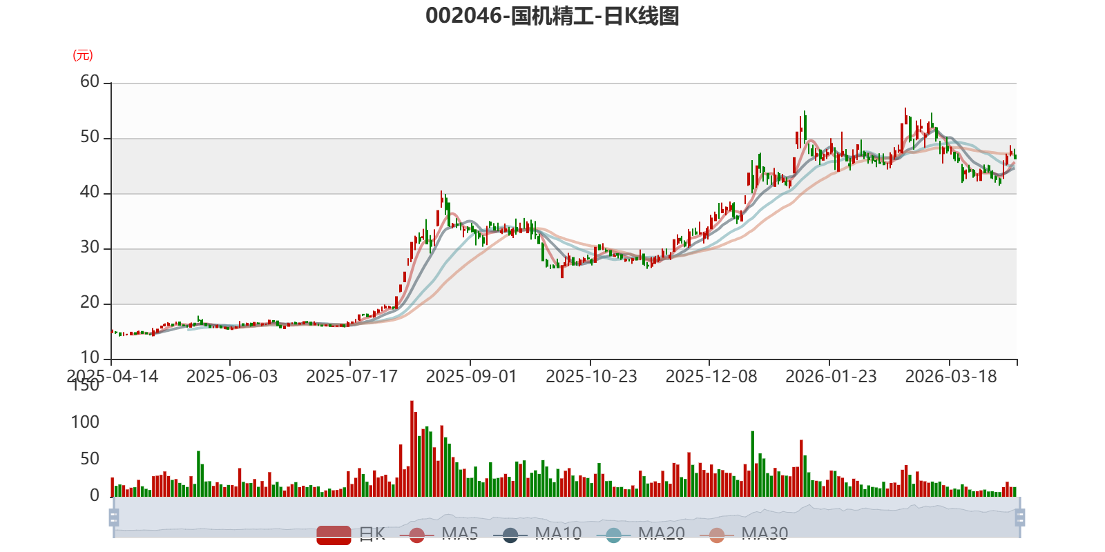 中证智能财讯国机精工(002046)4月13日晚间披露业绩预告,预计2026年一季度归母净利润亏损800万元至1200万元,上年同期盈利8848.22万元;扣非净利润亏损2500万元至3000万元,上年同期盈利4787.94万元;基本每股收益-0.0149元/股至-0.0224元/股。以4月13日收盘价计算,国机精工目前市盈率(TTM)约为151.37倍-155.16倍,市净率(LF)约5.73倍,市销率(TTM)约7.88倍。
