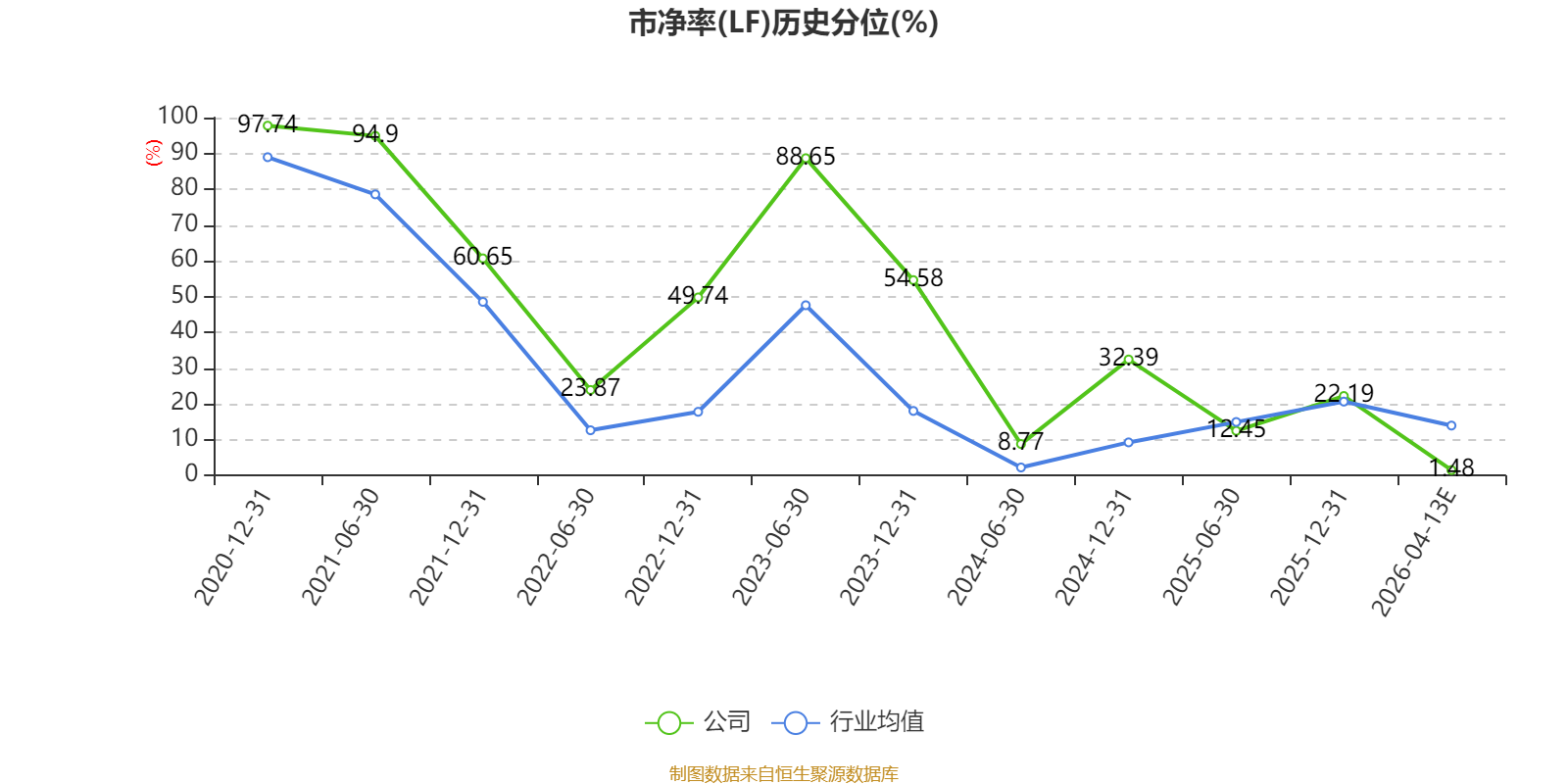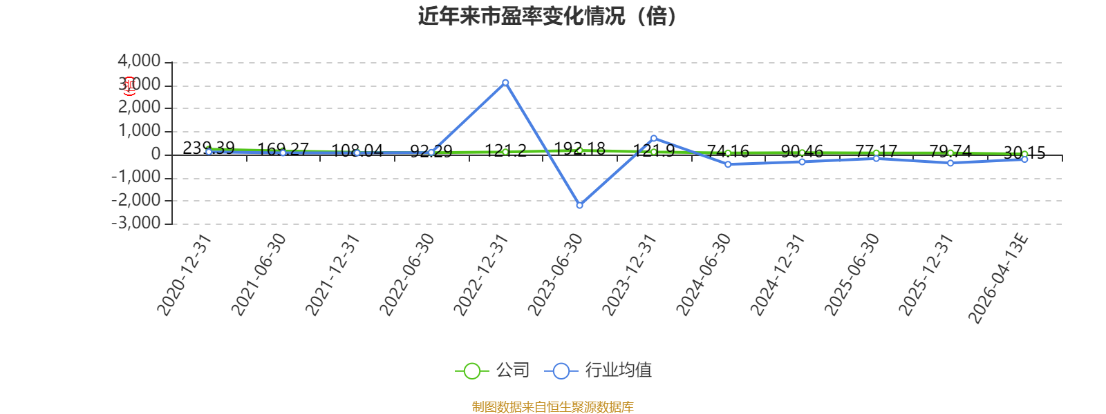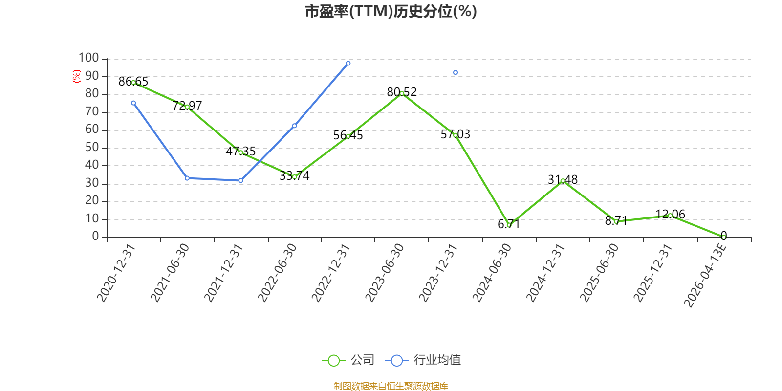 市盈率、市净率为负时,不显示当期分位数,会导致折线图中断。