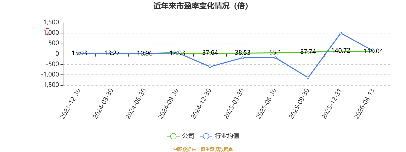 以4月13日收盘价计算,纳科诺尔目前市盈率(TTM)约为119.04倍,市净率(LF)约7.29倍,市销率(TTM)约8.02倍。