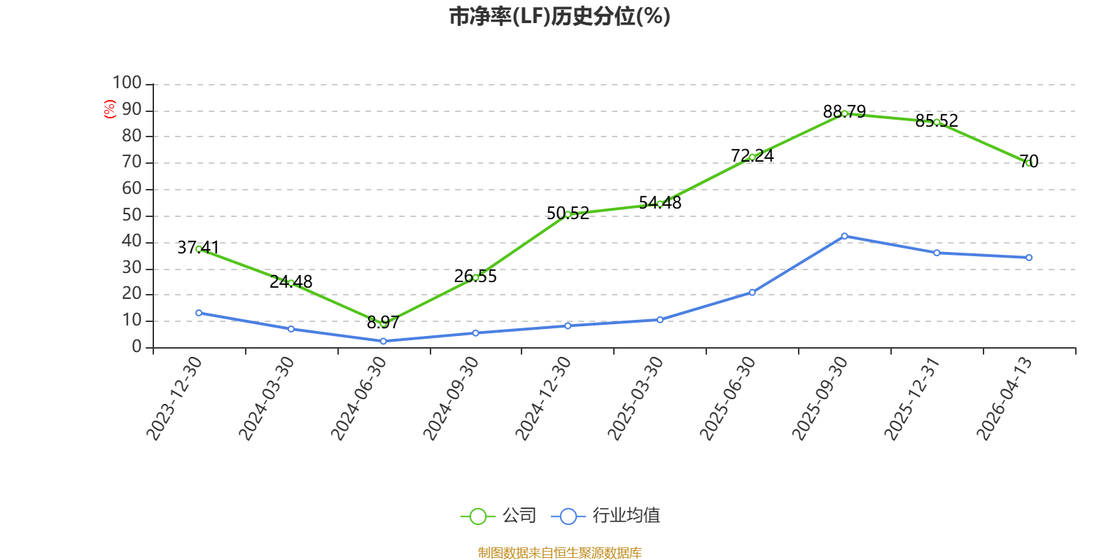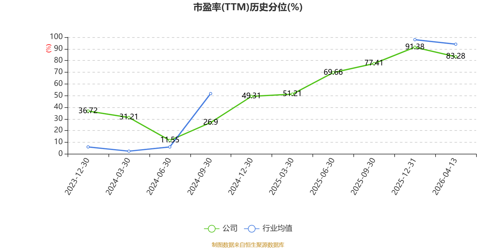 市盈率、市净率为负时,不显示当期分位数,会导致折线图中断。