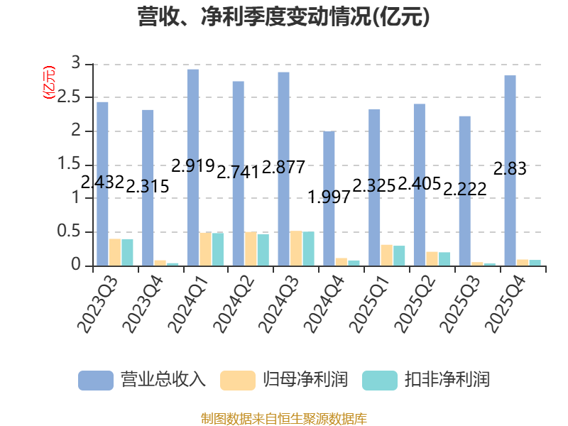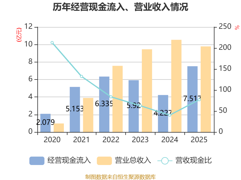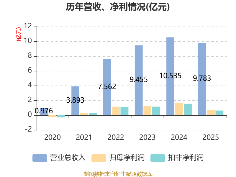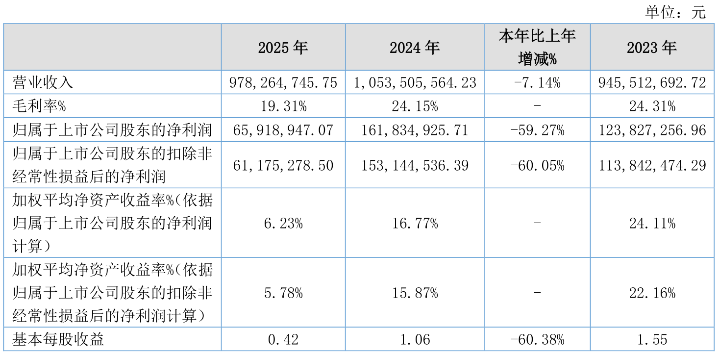 中证智能财讯纳科诺尔(920522)4月13日披露2025年年度报告。2025年,公司实现营业总收入9.78亿元,同比下降7.14%;归母净利润6591.89万元,同比下降59.27%;扣非净利润6117.53万元,同比下降60.05%;经营活动产生的现金流量净额为1.39亿元,同比下降20.57%;报告期内,纳科诺尔基本每股收益为0.42元,加权平均净资产收益率为6.23%。公司2025年度分配预案为:拟向全体股东每10股转4股,派现1元(含税)。