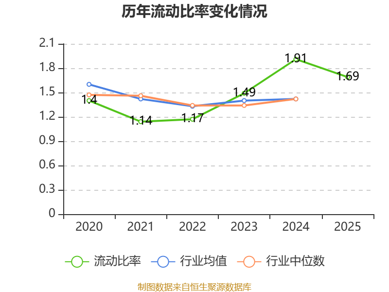 2025年,公司流动比率为1.69,速动比率为0.77。