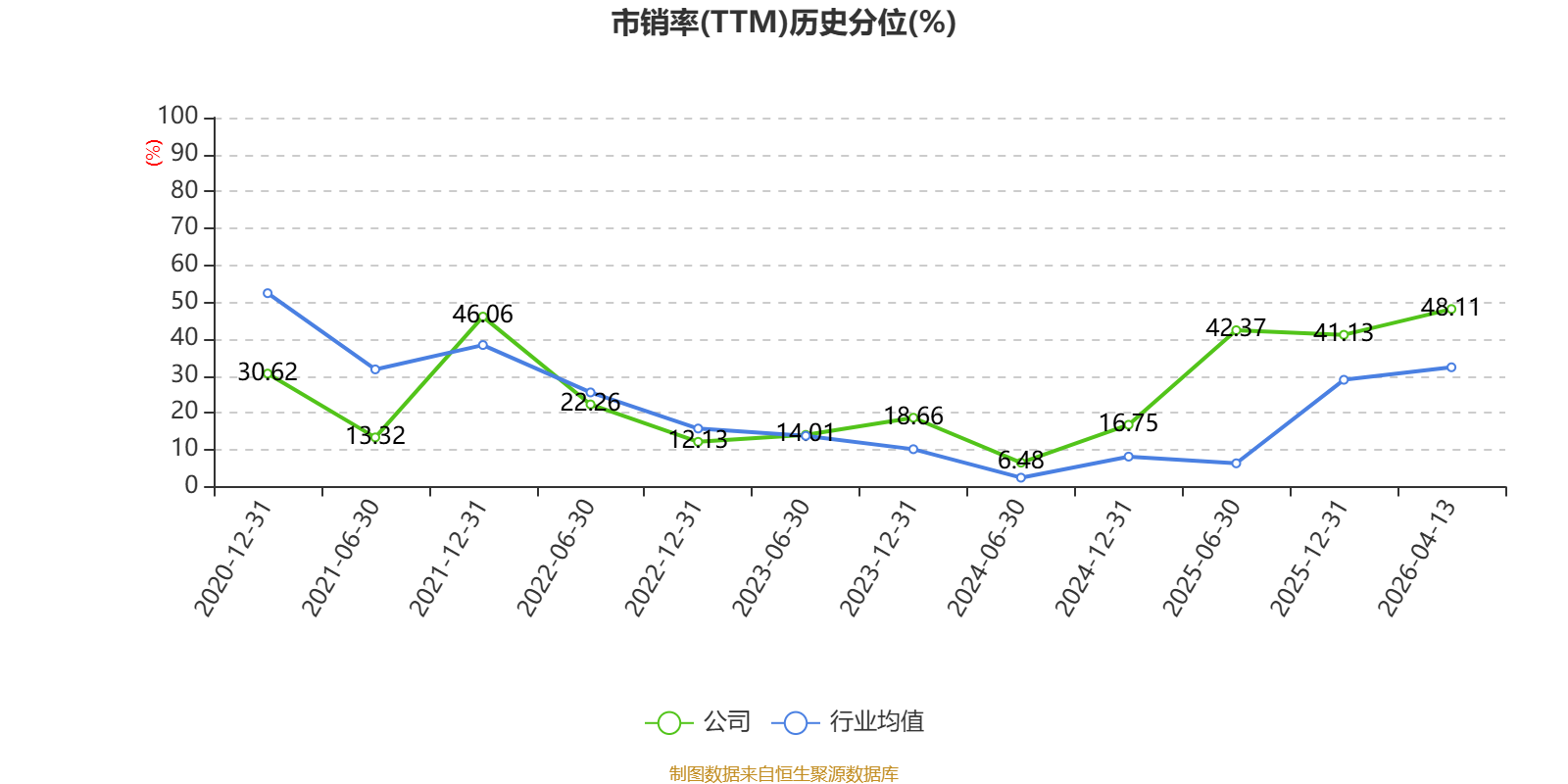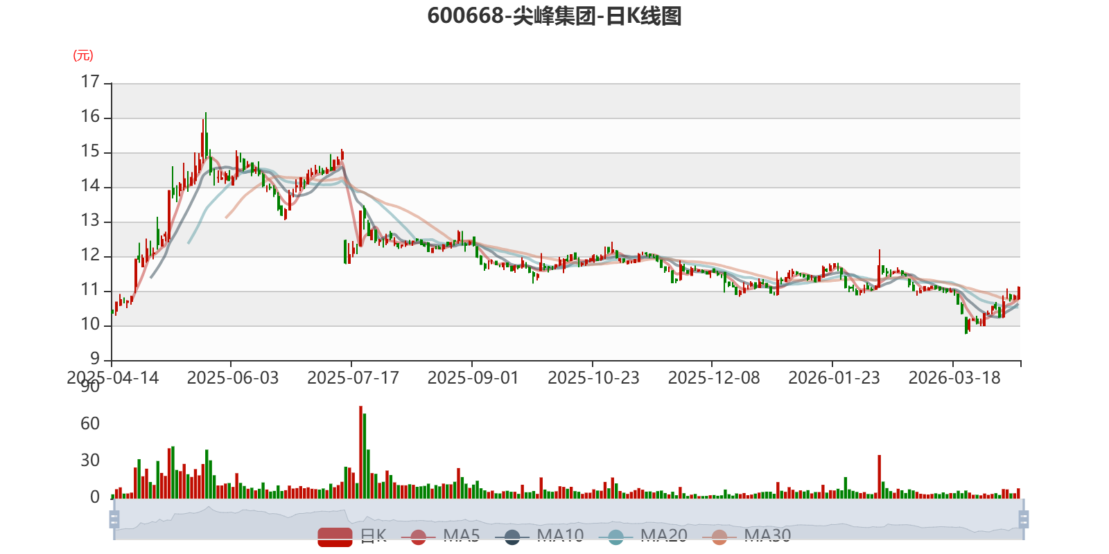 以4月13日收盘价计算,尖峰集团目前市盈率(TTM)约为11.13倍,市净率(LF)约0.83倍,市销率(TTM)约1.79倍。