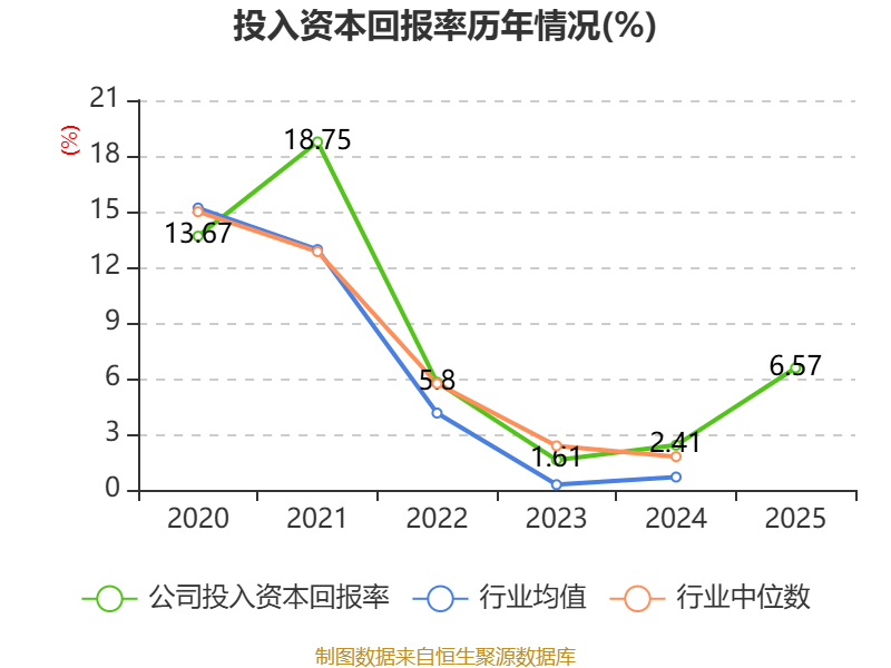 数据显示,2025年公司加权平均净资产收益率为7.69%,较上年同期上升5.59个百分点。公司2025年投入资本回报率为6.57%,较上年同期上升4.16个百分点。
