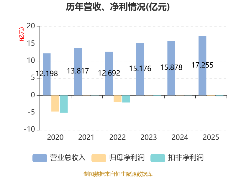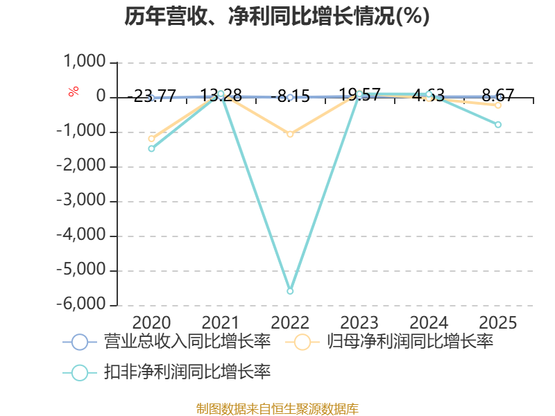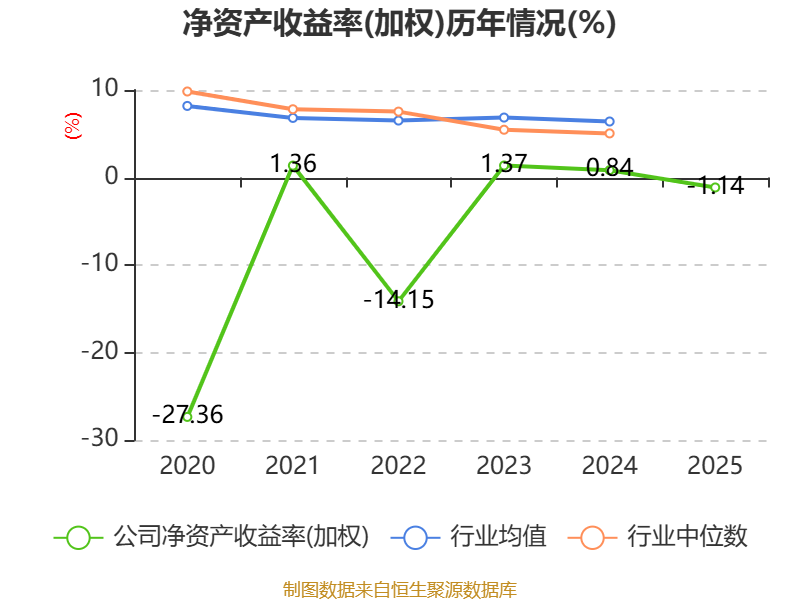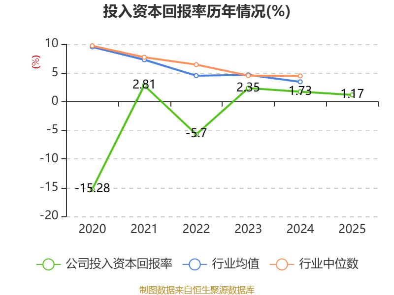 数据显示,2025年公司加权平均净资产收益率为-1.14%,较上年同期下降1.98个百分点。公司2025年投入资本回报率为1.17%,较上年同期下降0.56个百分点。