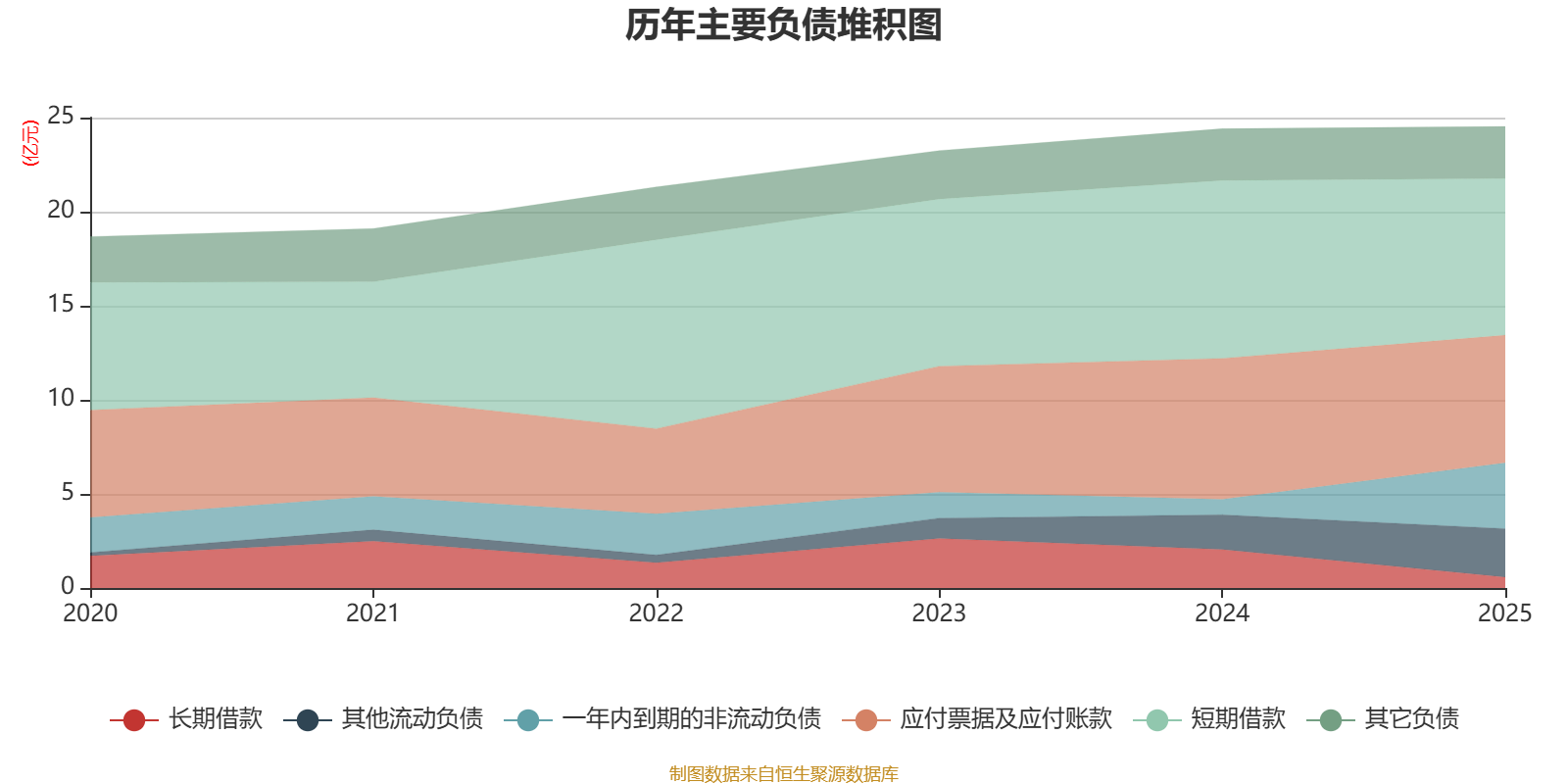 负债重大变化方面,截至2025年末,公司一年内到期的非流动负债较上年末增加327.13%,占公司总资产比重上升6.59个百分点;短期借款较上年末减少12%,占公司总资产比重下降4.2个百分点;长期借款较上年末减少71.99%,占公司总资产比重下降3.98个百分点;应付票据及应付账款较上年末减少9.45%,占公司总资产比重下降2.85个百分点。