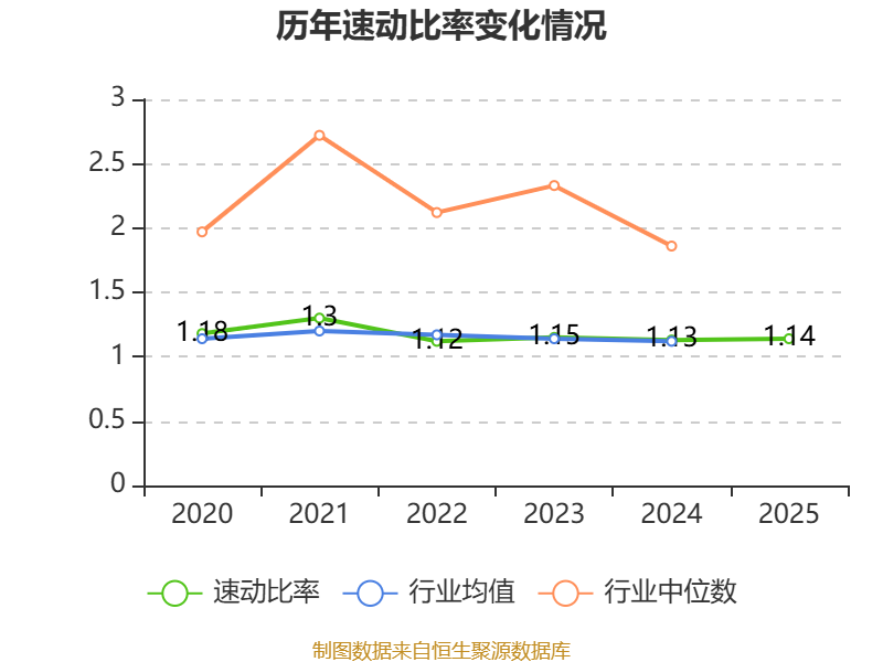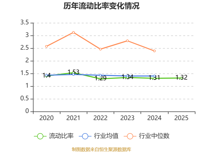 2025年,公司流动比率为1.32,速动比率为1.14。
