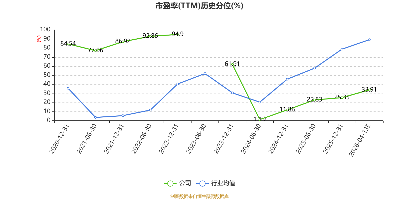 以本次披露业绩预告均值计算,公司近年市盈率(TTM)图如下所示:
