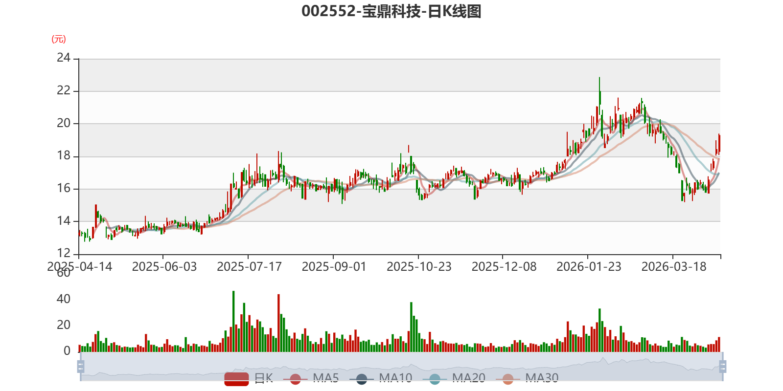 中证智能财讯宝鼎科技(002552)4月13日晚间披露业绩预告,预计2026年一季度归母净利润6000万元至7000万元,同比增长233.98%-289.64%;扣非净利润预计6500万元至7500万元,同比增长224.42%-274.34%;基本每股收益0.15元/股-0.18元/股。以4月13日收盘价计算,宝鼎科技目前市盈率(TTM)约为42.44倍-44.99倍,市净率(LF)约4.99倍,市销率(TTM)约2.38倍。