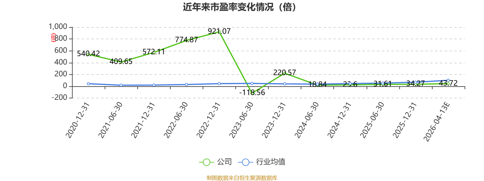 市盈率、市净率为负时,不显示当期分位数,会导致折线图中断。