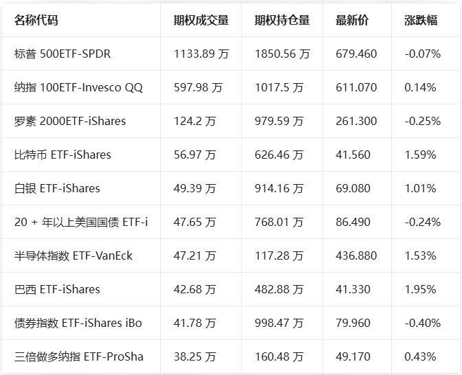 期权成交量排行榜
