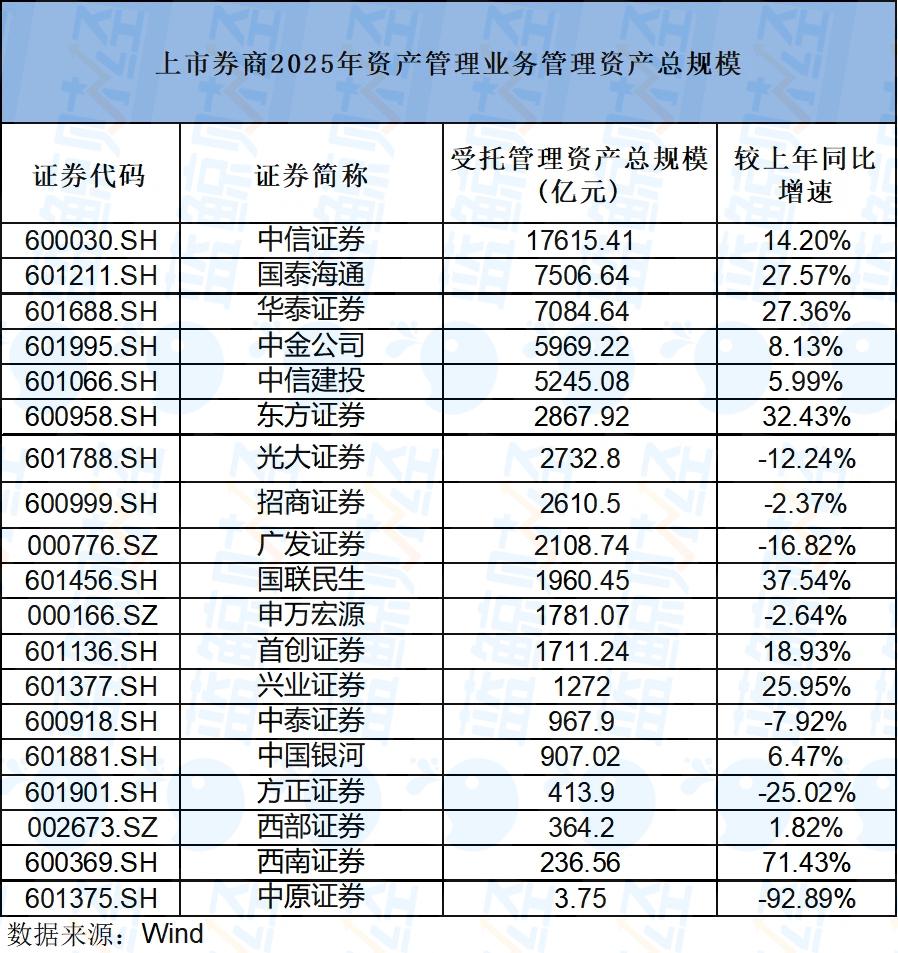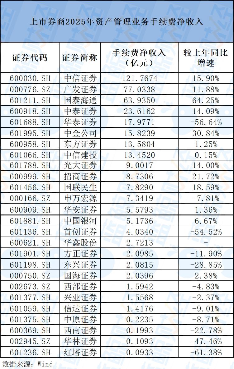 据记者统计,目前有26家上市券商披露2025年资管业务手续费净收入,合计409.01亿元,较上年同比增长约8%,其中过半实现正增长,但头部券商和中小型券商的创收能力差距较为显著。