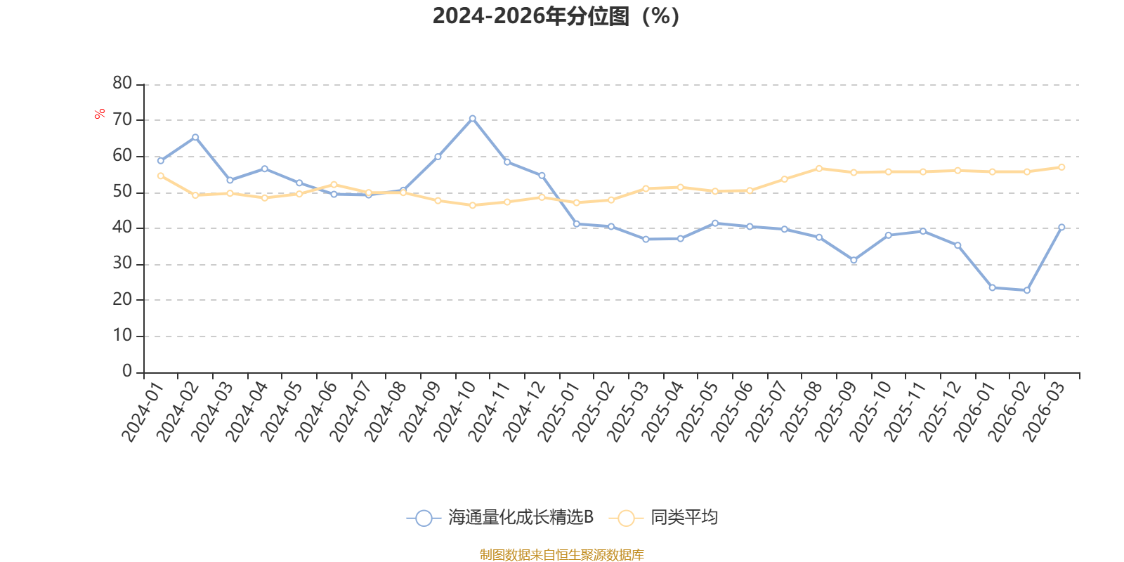 通过所选区间该基金净值增长率分位图,可以观察该基金与同类基金业绩比较情况。图为坐标原点到区间内某时点的净值增长率在同类基金中的分位数。