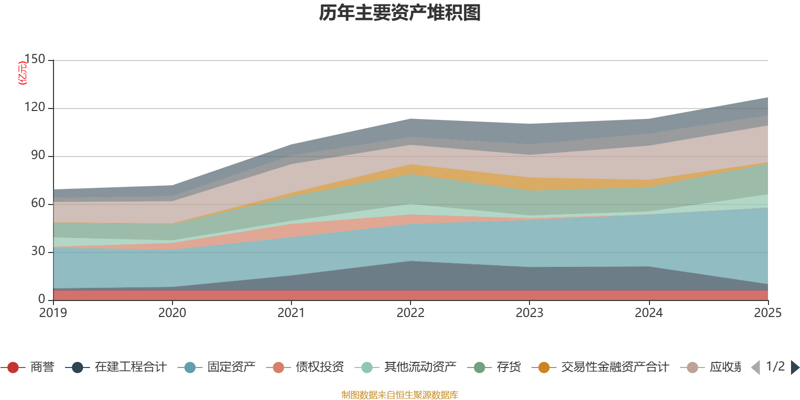 资产重大变化方面,截至2025年末,公司在建工程合计较上年末减少73.79%,占公司总资产比重下降10.13个百分点;固定资产较上年末增加46.99%,占公司总资产比重上升9.01个百分点;其他流动资产较上年末增加344.81%,占公司总资产比重上升4.92个百分点;交易性金融资产合计较上年末减少82.58%,占公司总资产比重下降3.46个百分点。
