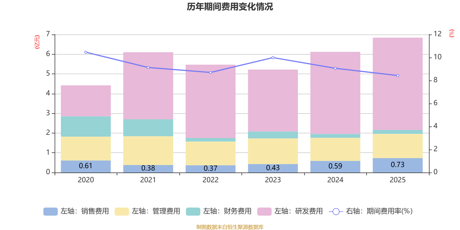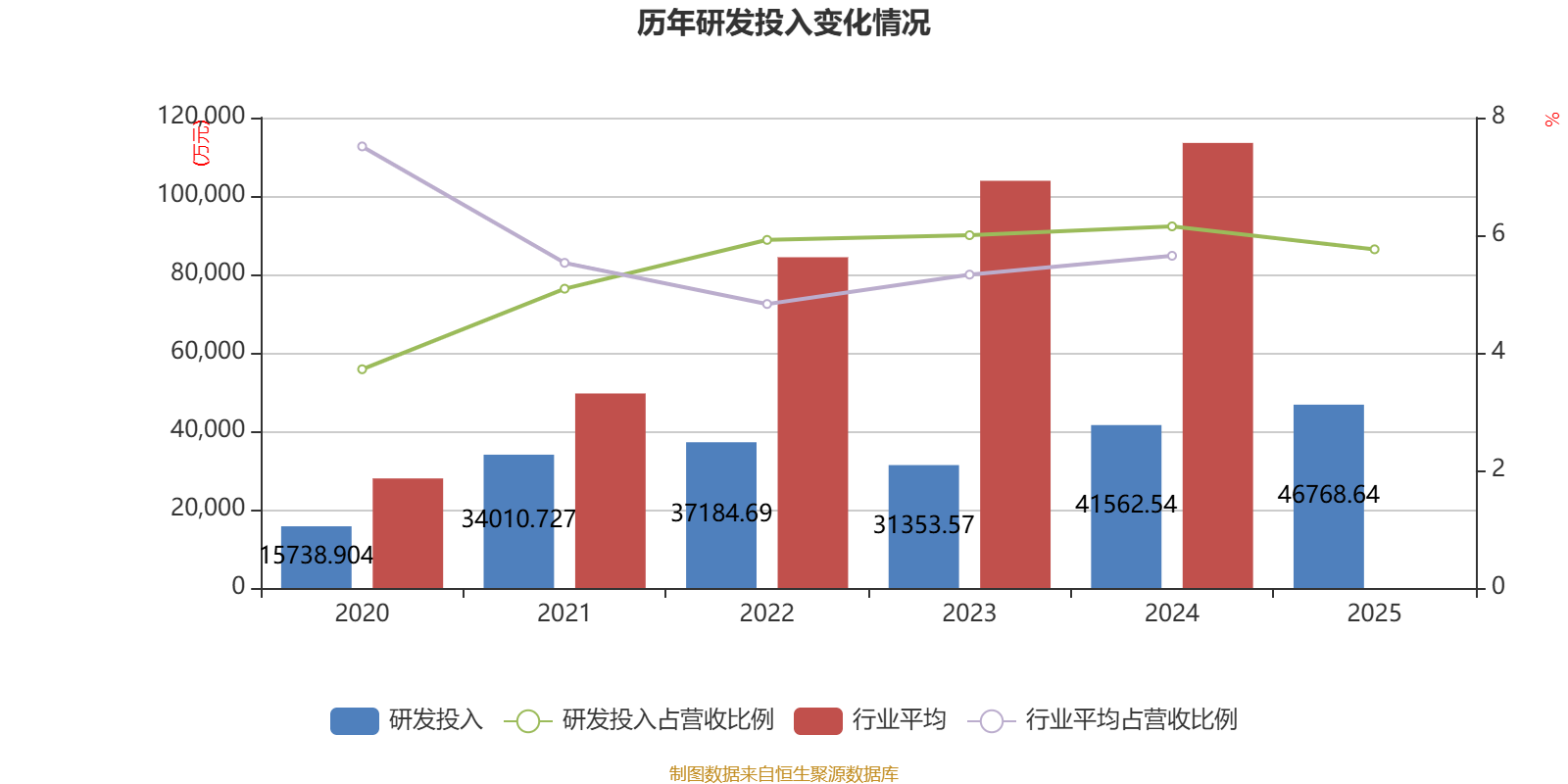2025年全年,公司研发投入金额为4.68亿元,同比增长12.53%;研发投入占营业收入比例为5.76%,相比上年同期下降0.39个百分点。此外,公司全年研发投入资本化率为0%。