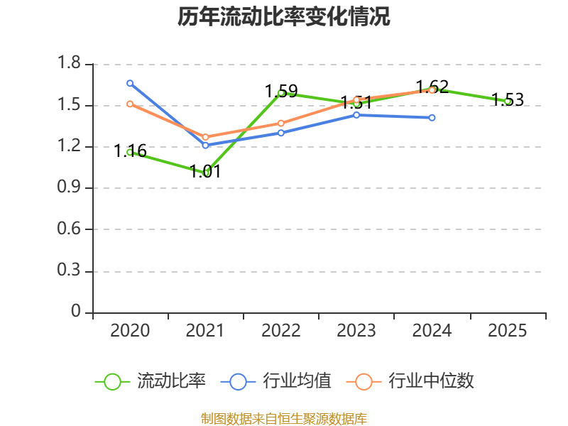 2025年,公司流动比率为1.53,速动比率为1.07。
