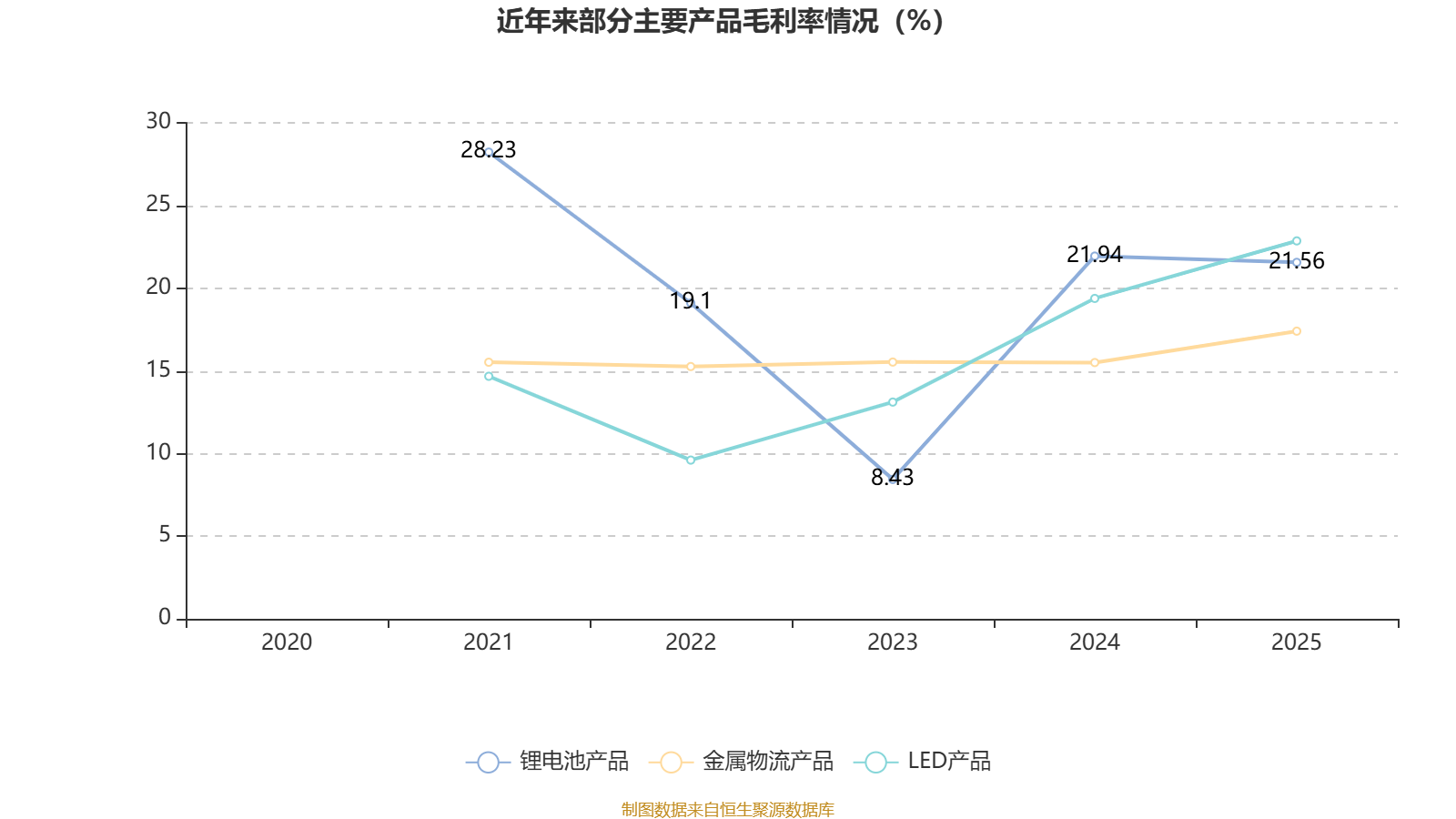 资料显示,公司主要从事锂电池、LED芯片及金属物流配送三大业务。