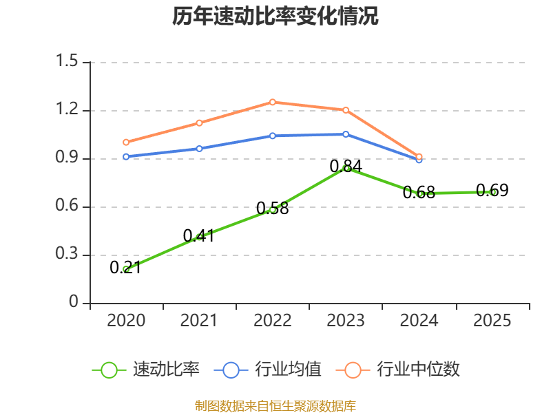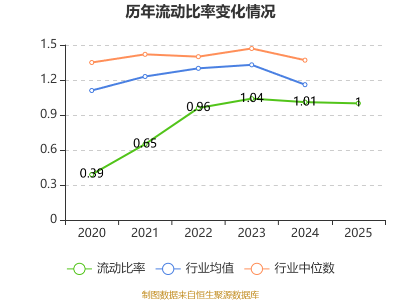 2025年,公司流动比率为1,速动比率为0.69。