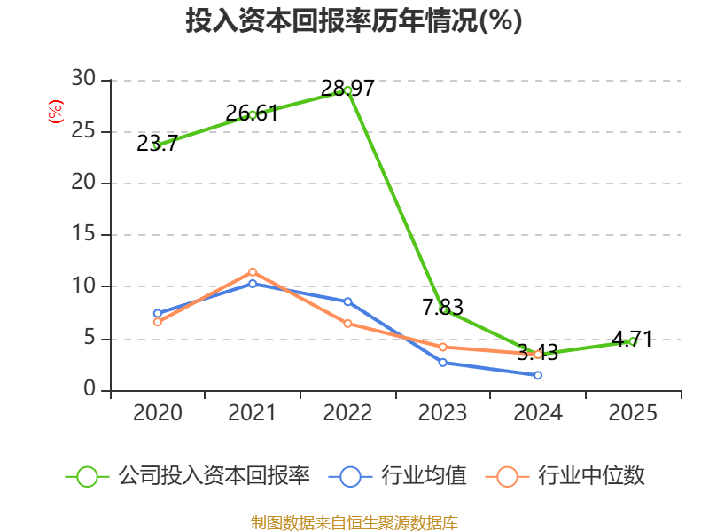 数据显示,2025年公司加权平均净资产收益率为7.04%,较上年同期上升3.18个百分点。公司2025年投入资本回报率为4.71%,较上年同期上升1.28个百分点。