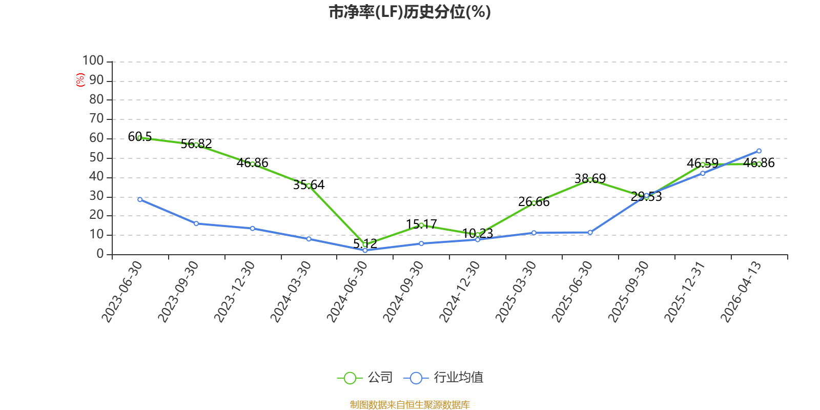 市盈率、市净率为负时,不显示当期分位数,会导致折线图中断。