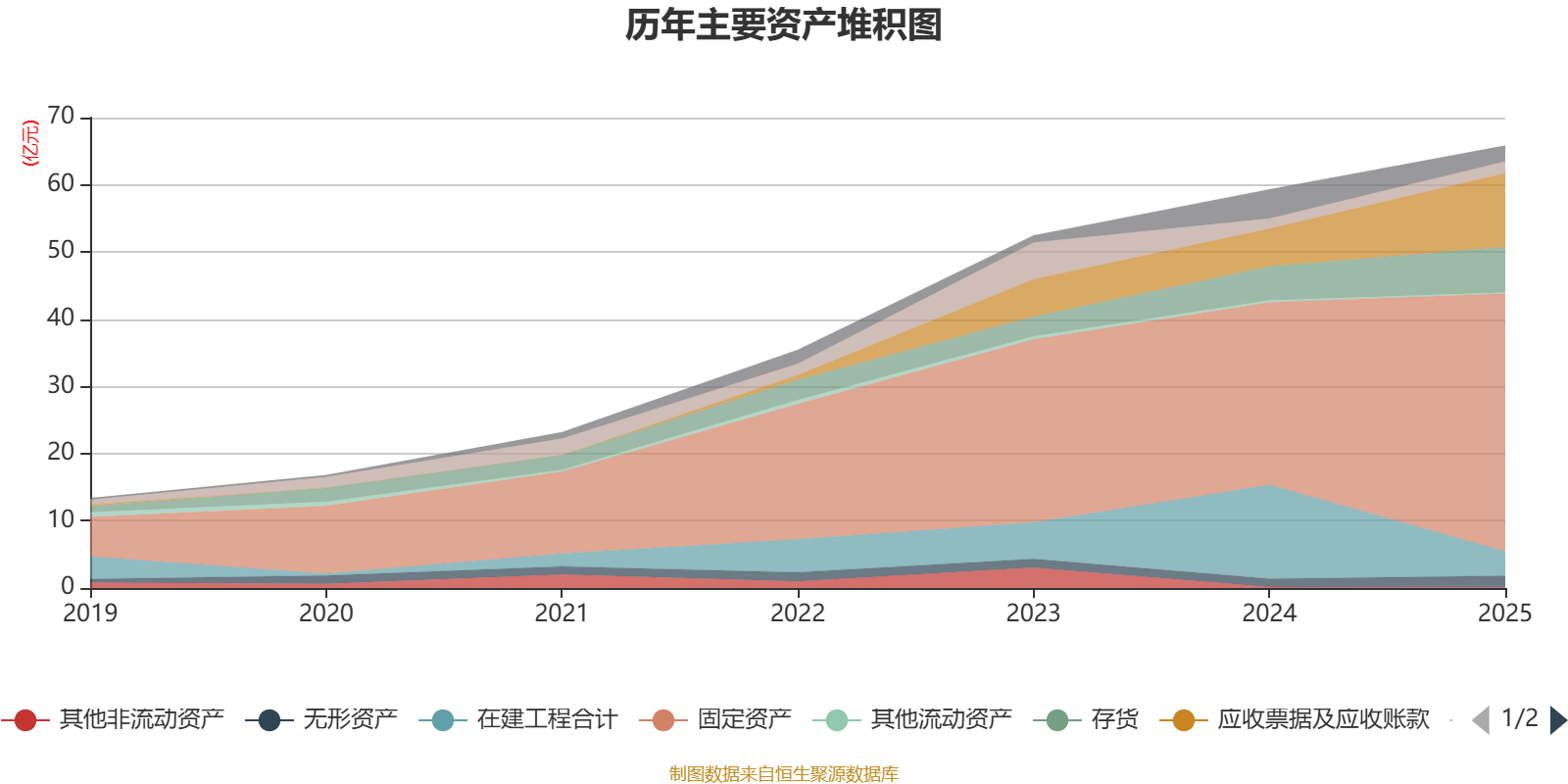 资产重大变化方面,截至2025年末,公司在建工程合计较上年末减少73.75%,占公司总资产比重下降17.98个百分点;固定资产较上年末增加41.06%,占公司总资产比重上升12.43个百分点;应收票据及应收账款较上年末增加95.91%,占公司总资产比重上升7.24个百分点;使用权资产较上年末减少94.25%,占公司总资产比重下降2个百分点。