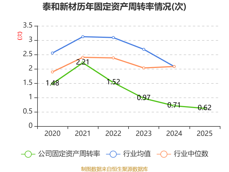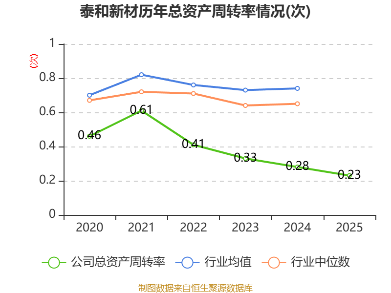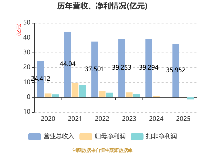中证智能财讯泰和新材(002254)4月14日披露2025年年度报告。2025年,公司实现营业总收入35.95亿元,同比下降8.51%;归母净利润4146.49万元,同比下降52.81%;扣非净利润亏损1.43亿元,上年同期盈利144.09万元;经营活动产生的现金流量净额为1.74亿元,上年同期为-5.93亿元;报告期内,泰和新材基本每股收益为0.05元,加权平均净资产收益率为0.58%。公司2025年度分配预案为:拟向全体股东每10股派现0.2元(含税)。