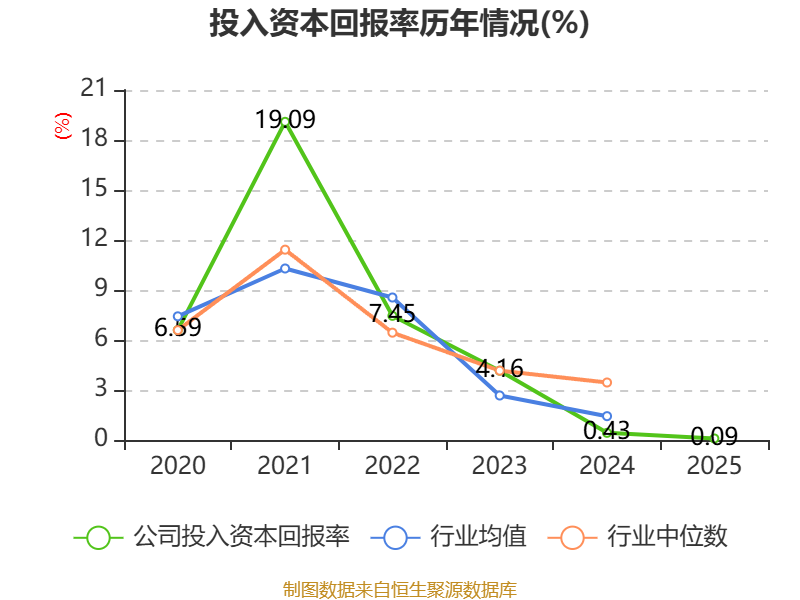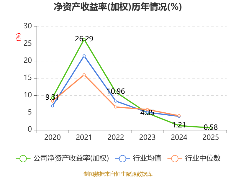 数据显示,2025年公司加权平均净资产收益率为0.58%,较上年同期下降0.63个百分点。公司2025年投入资本回报率为0.09%,较上年同期下降0.34个百分点。