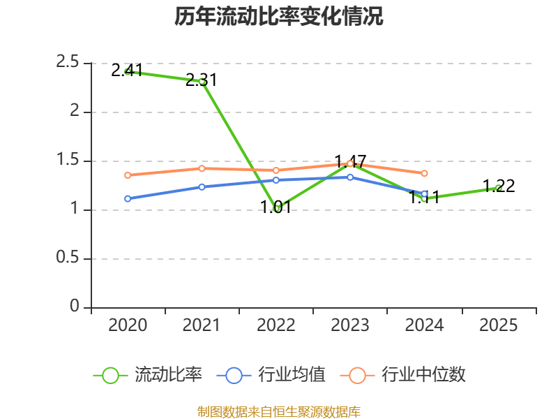 2025年,公司流动比率为1.22,速动比率为0.96。