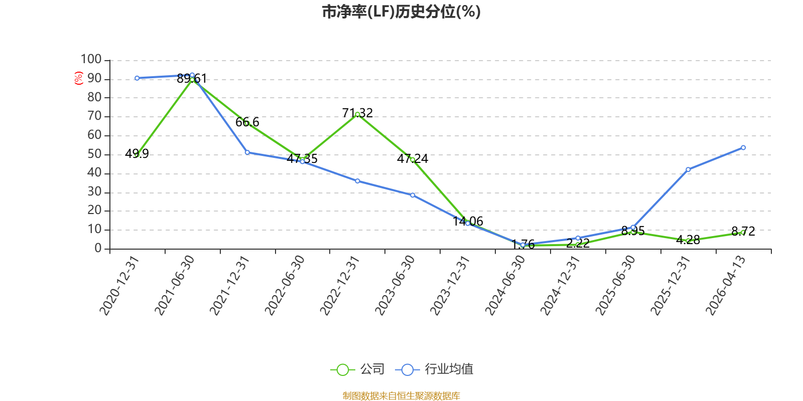 市盈率、市净率为负时,不显示当期分位数,会导致折线图中断。