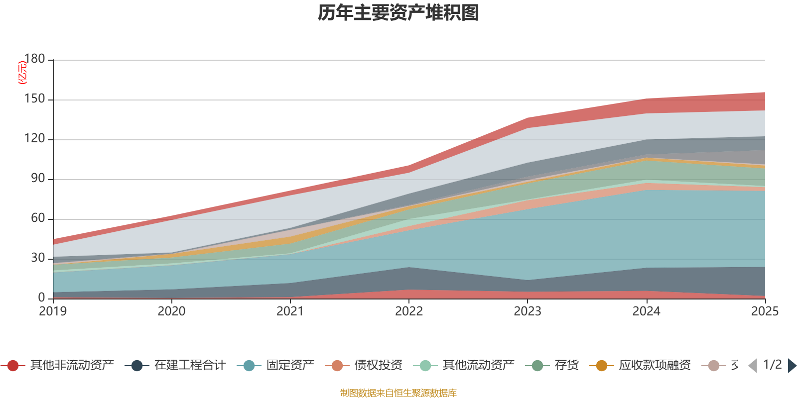 资产重大变化方面,截至2025年末,公司其他应收款(含利息和股利)较上年末增加363.84%,占公司总资产比重上升5.37个百分点;其他非流动资产较上年末减少67.47%,占公司总资产比重下降2.6个百分点;在建工程合计较上年末增加25.59%,占公司总资产比重上升2.52个百分点;固定资产较上年末减少2.2%,占公司总资产比重下降2.02个百分点。