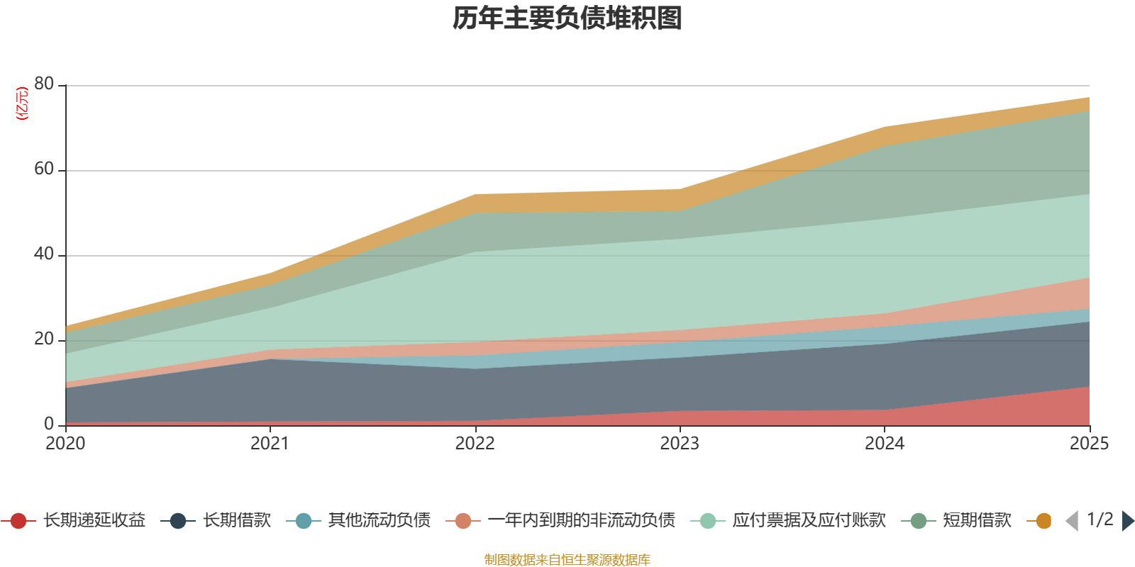 负债重大变化方面,截至2025年末,公司长期递延收益较上年末增加154.7%,占公司总资产比重上升3.48个百分点;一年内到期的非流动负债较上年末增加137.12%,占公司总资产比重上升2.65个百分点;应付票据及应付账款较上年末减少11.66%,占公司总资产比重下降2.12个百分点;短期借款较上年末增加14.42%,占公司总资产比重上升1.24个百分点。
