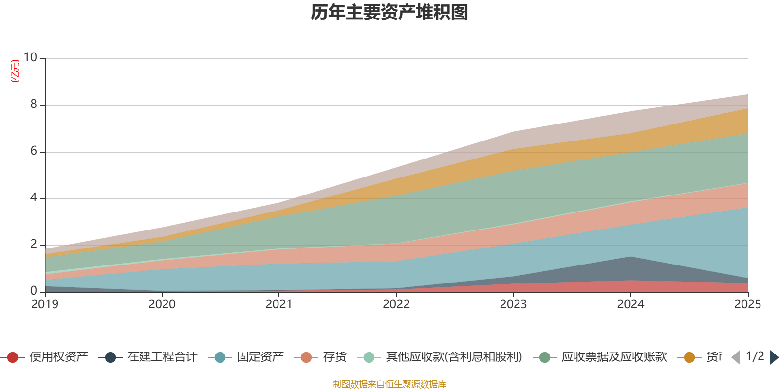 资产重大变化方面,截至2025年末,公司固定资产较上年末增加121.71%,占公司总资产比重上升18.16个百分点;在建工程合计较上年末减少79.68%,占公司总资产比重下降10.73个百分点;应收票据及应收账款较上年末增加1.19%,占公司总资产比重下降2.04个百分点;货币资金较上年末增加30.44%,占公司总资产比重上升2.02个百分点。
