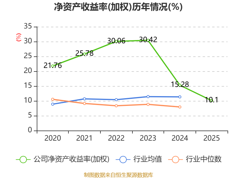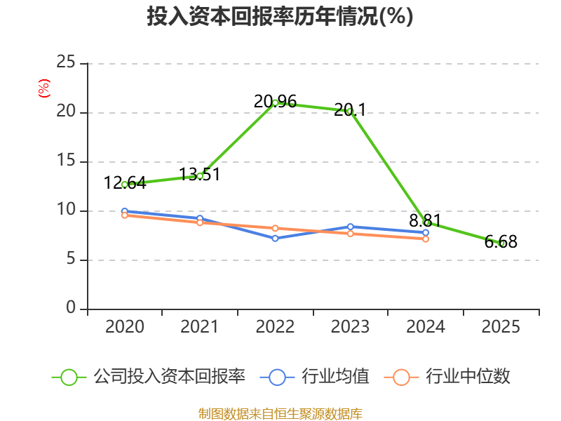 数据显示,2025年公司加权平均净资产收益率为10.1%,较上年同期下降5.18个百分点。公司2025年投入资本回报率为6.68%,较上年同期下降2.13个百分点。