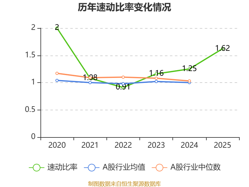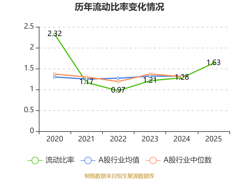 2025年,公司流动比率为1.63,速动比率为1.62。