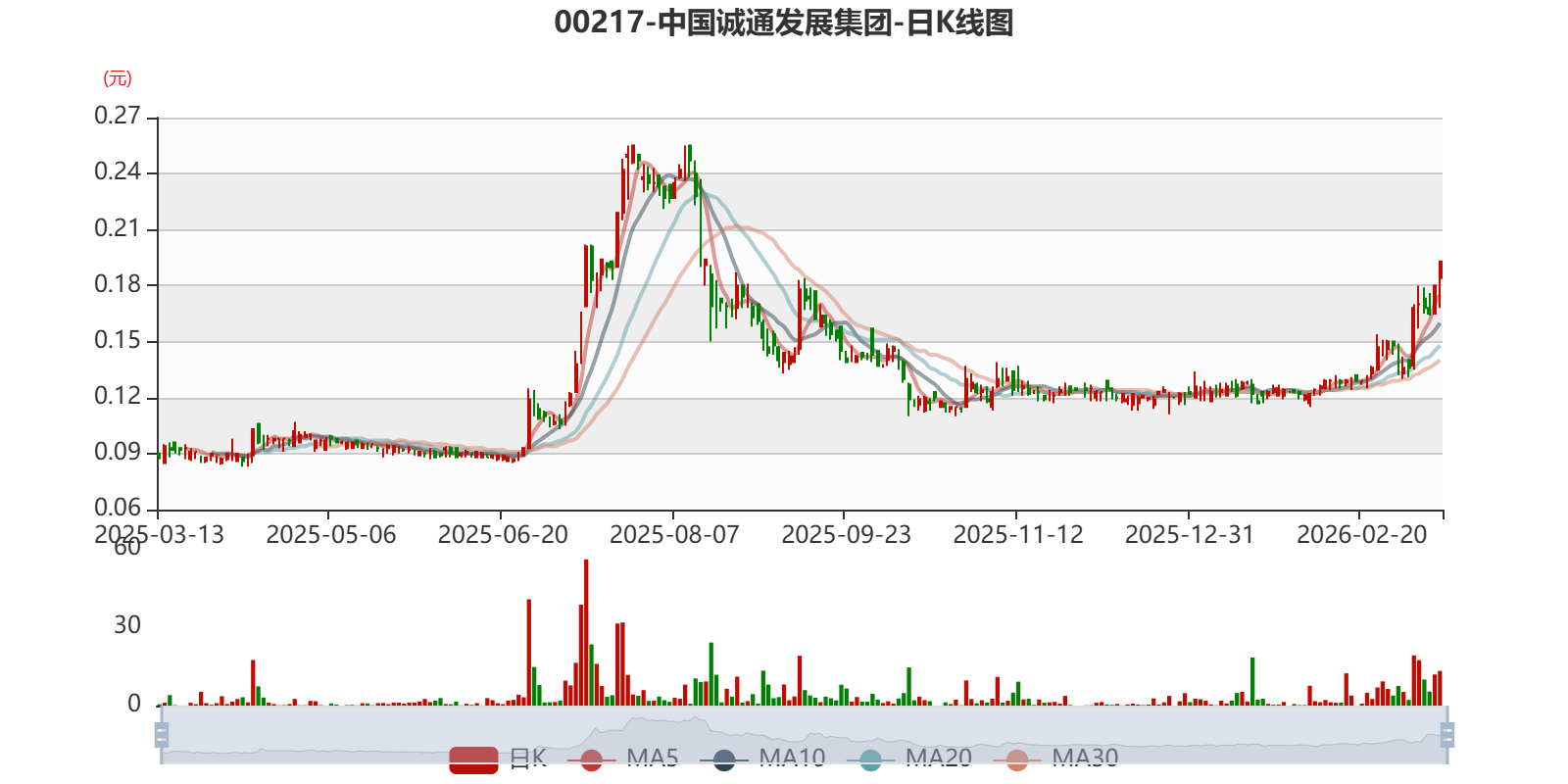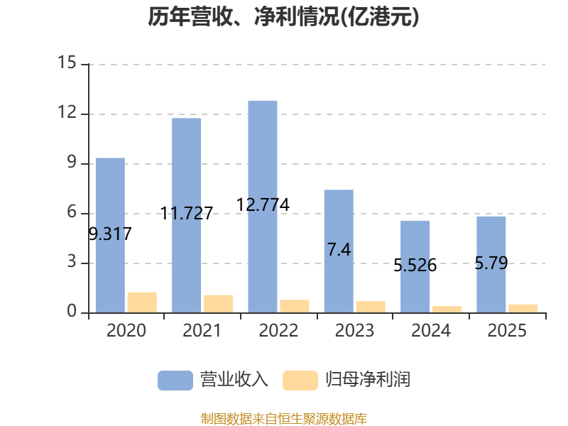 中证智能财讯中国诚通发展集团(00217)3月13日披露2025年度报告。报告期内,公司实现营业收入5.79亿港元,同比增长4.77%;归母净利润4785.1万港元,同比增长23.86%;据报告显示,中国诚通发展集团基本每股收益为0.008港元,平均净资产收益率为1.68%。公司2025年分配预案为:每股派息0.0025港元。