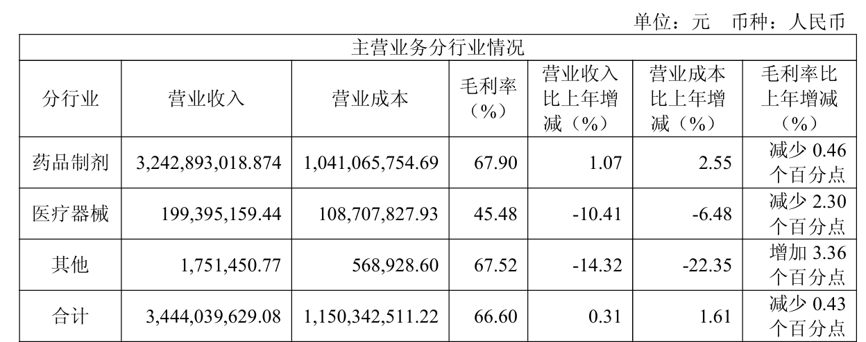更令市场担忧的是第二大业务医疗器械板块,营收同比“跳水”10.41%,毛利率更是锐减2.30个百分点。作为营收贡献仅次于药品制剂的业务板块,如此大幅度的业绩滑坡无疑给公司整体盈利蒙上了阴影。