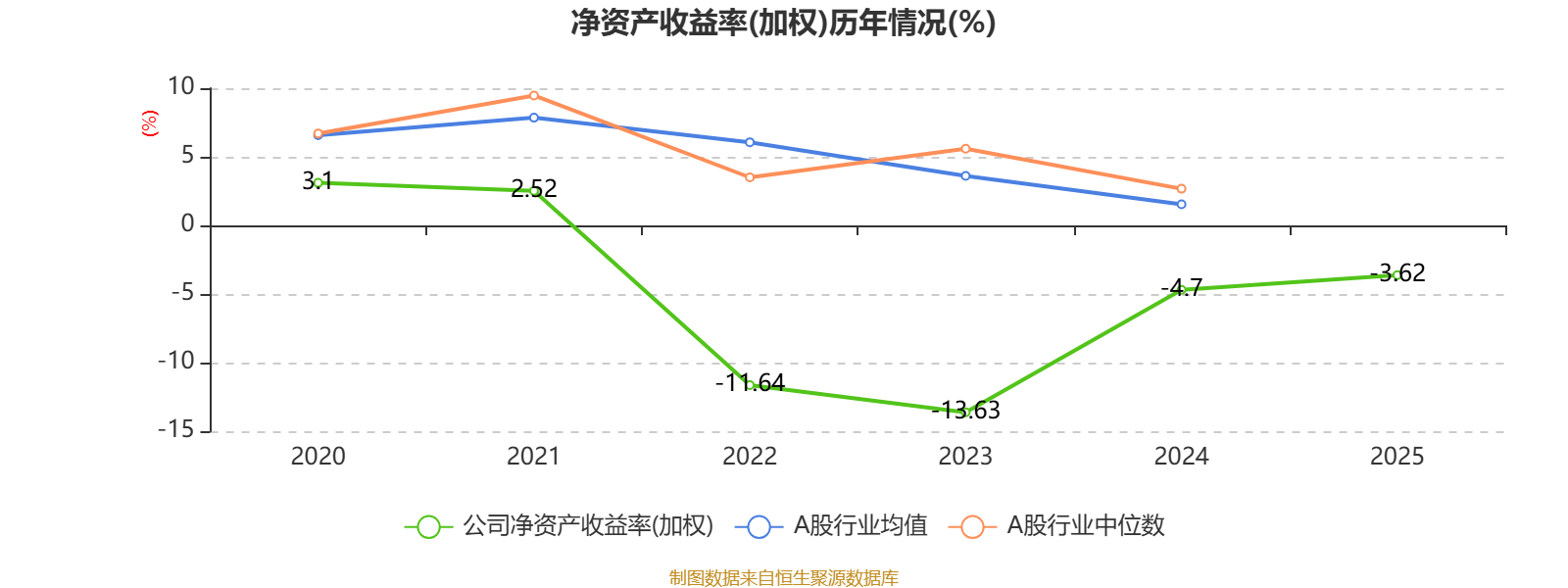 数据显示,2025年公司平均净资产收益率为-3.62%,较上年同期上升1.08个百分点。