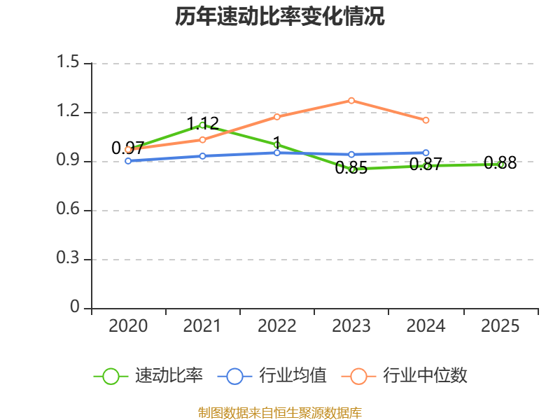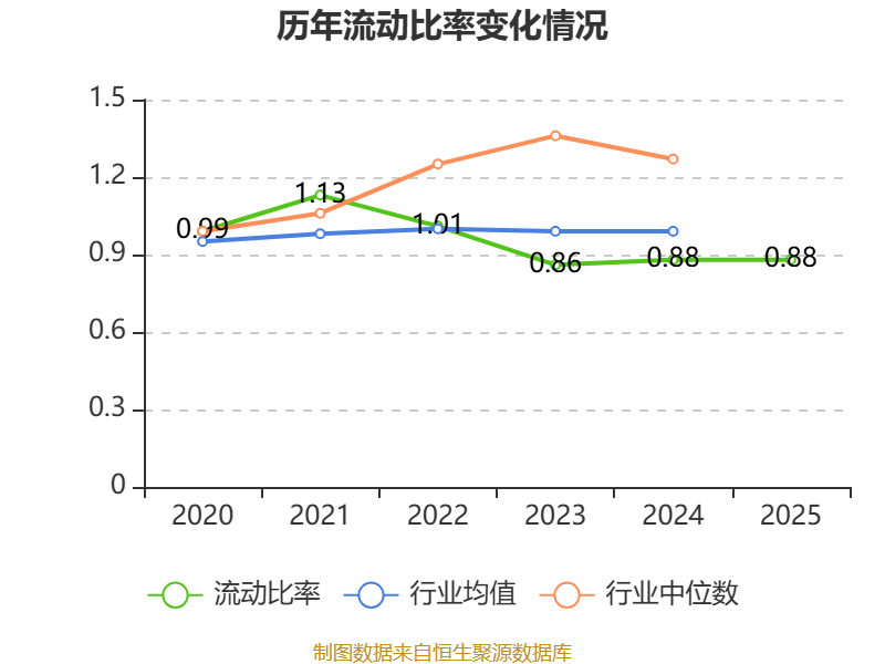 2025年,公司流动比率为0.88,速动比率为0.88。