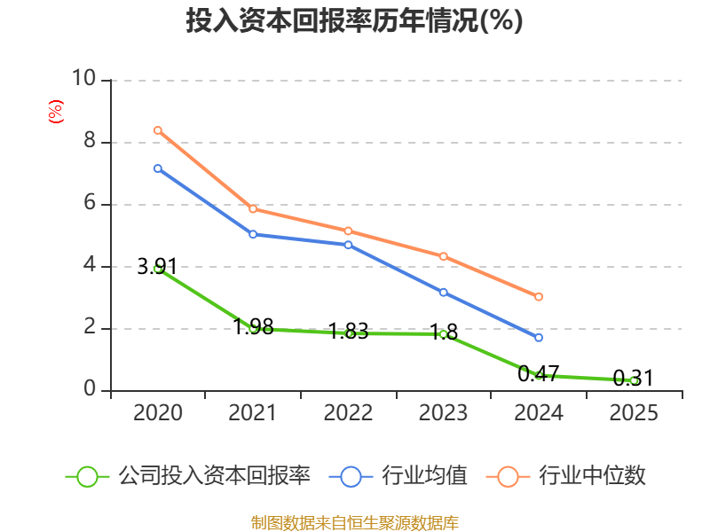 数据显示,2025年公司加权平均净资产收益率为0.22%,较上年同期上升0.01个百分点。公司2025年投入资本回报率为0.31%,较上年同期下降0.16个百分点。