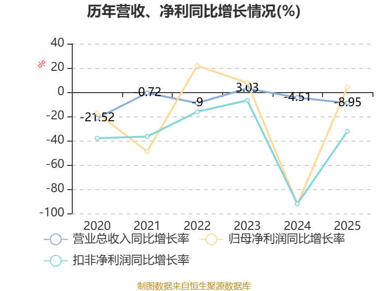 中证智能财讯碧水源(300070)4月14日披露2025年年度报告。2025年,公司实现营业总收入77.84亿元,同比下降8.95%;归母净利润6098.31万元,同比增长4.09%;扣非净利润2267.29万元,同比下降32.28%;经营活动产生的现金流量净额为12.11亿元,上年同期为-2.38亿元;报告期内,碧水源基本每股收益为0.0168元,加权平均净资产收益率为0.22%。公司2025年度分配预案为:拟向全体股东每10股派现0.04元(含税)。