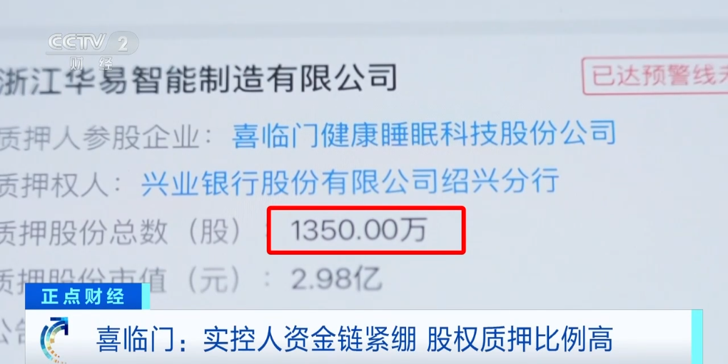 上海财经大学滴水湖高级金融学院教授陈欣:喜临门大概有20亿元出头的有息负债,大概有20亿元的供应链账款,供应商一旦判断上市公司有风险,实际上就更不愿意继续垫款,就会对上市公司的资金产生很多冲击。银行在对它进行融资的时候也会变得更为谨慎。