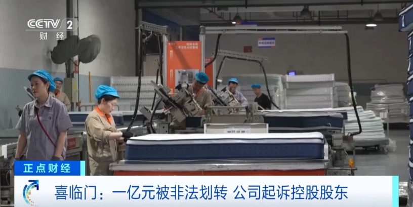 总台央视记者刘怡乐:最近一周,喜临门接连曝出重大经营风险。公司更是直接将控股股东告上法庭,一场“子告父”风波正在行业内上演。目前公司的经营仍然正常,产线也在正常运转,厂区内也一直有货车进出。