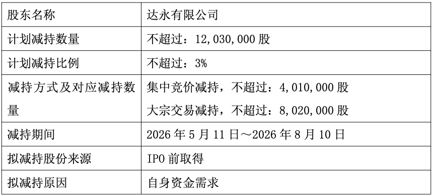 事实上,自2023年股份解禁后,达永有限便开启持续减持,截至本次减持计划披露,已累计减持超11%股份,持股比例从30.3%降至18.16%。