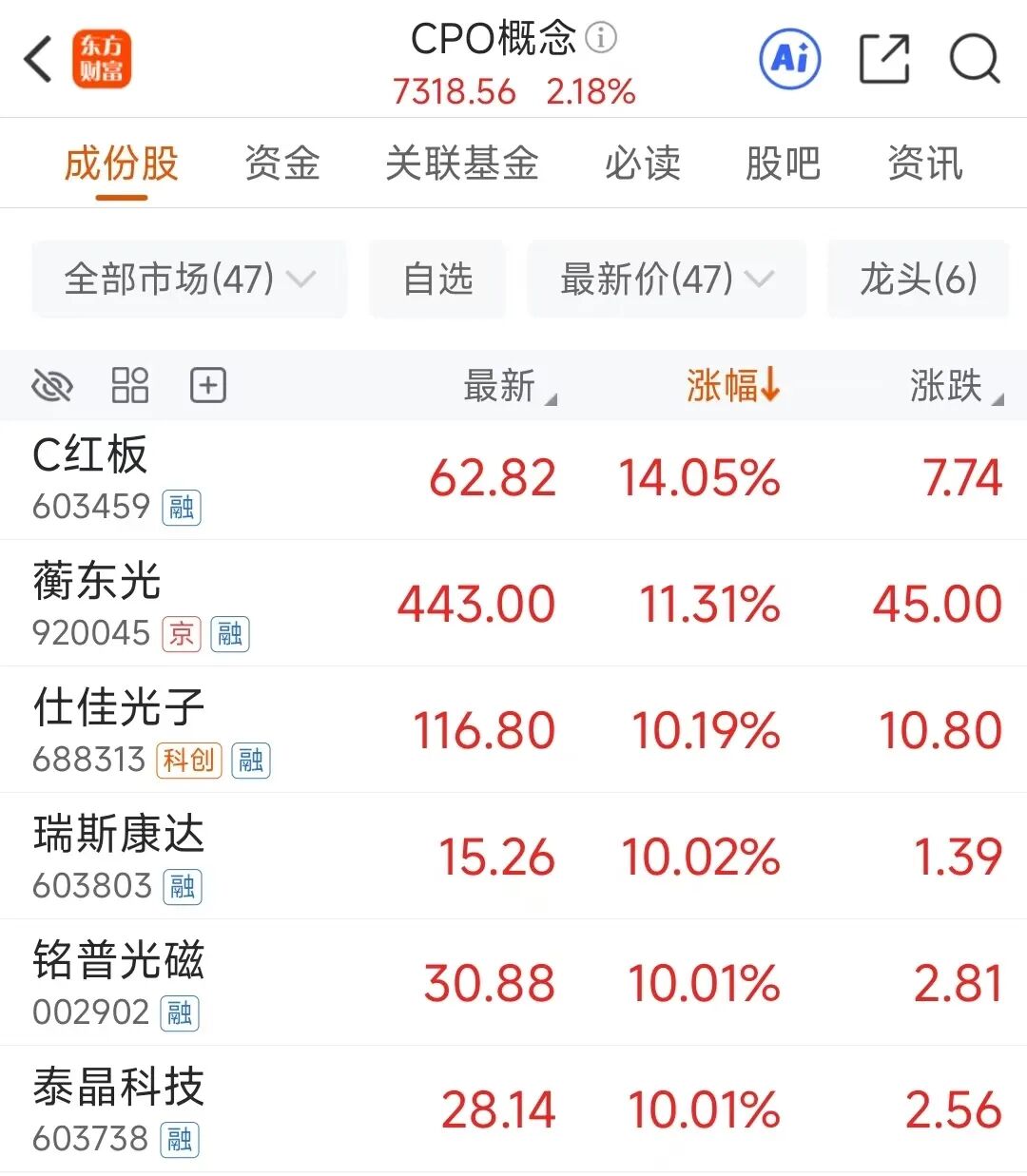 光模块、CPO两大概念4月13日也继续走强,板块指数双双创出历史新高,前者2026年以来涨37.49%,后者涨46.19%。个股而言,铭普光磁、泰晶科技、兴森科技、瑞斯康达涨停;C红板、蘅东光、仕佳光子大涨超10%。