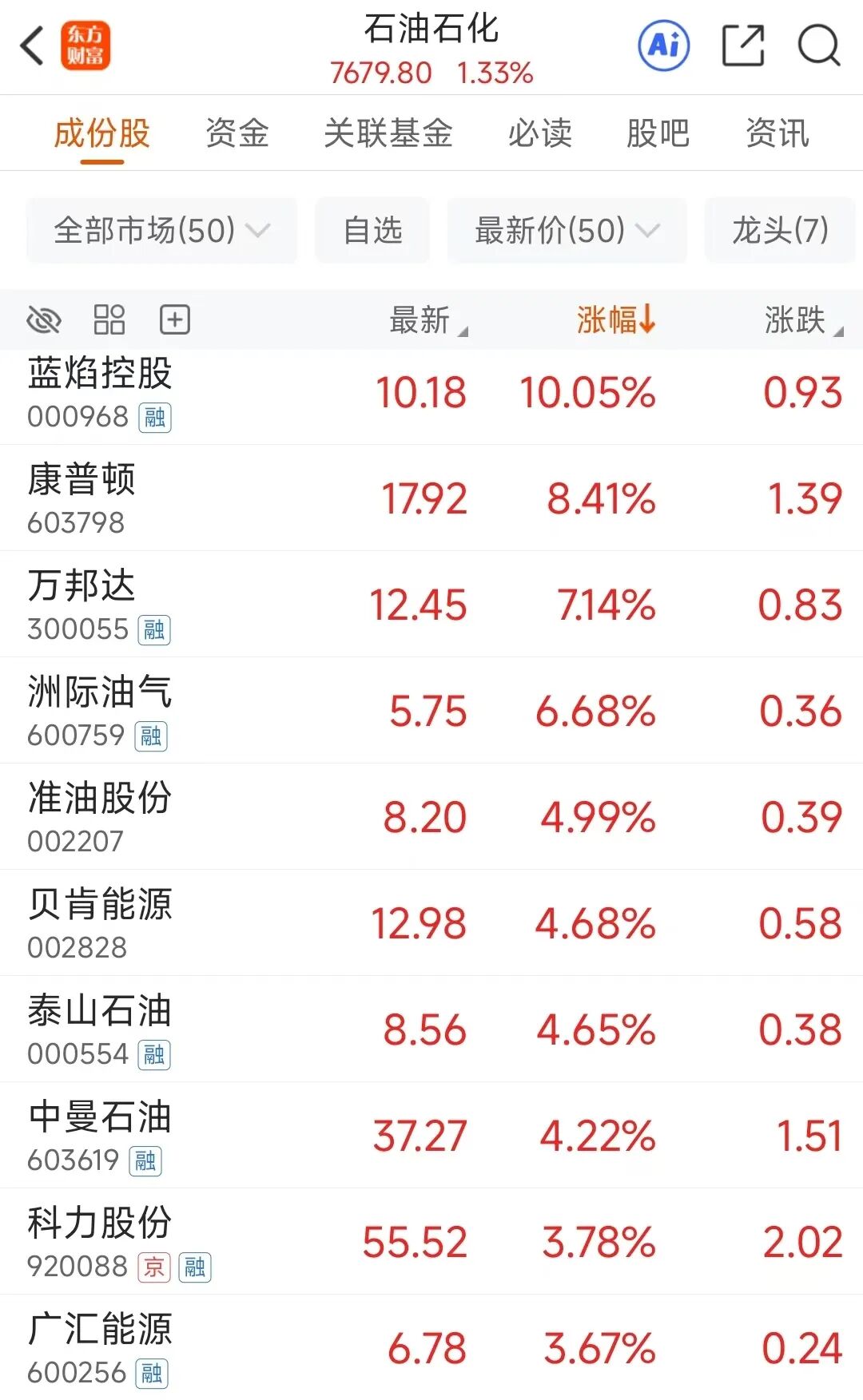 受此提振,A股石油石化板块虽早盘高开低走,但午后突然异动拉升。蓝焰控股午后快速拉升涨停;洲际油气、准油股份、通源石油等多股午后也明显拉升。