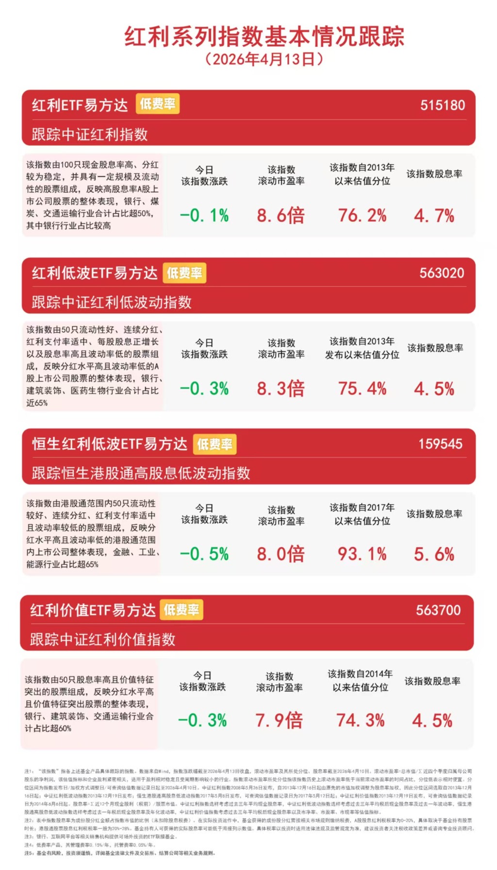 超1200家上市公司发布分红预案,红利低波ETF易方达(563020)、红利ETF易方达(515180)受资金关注