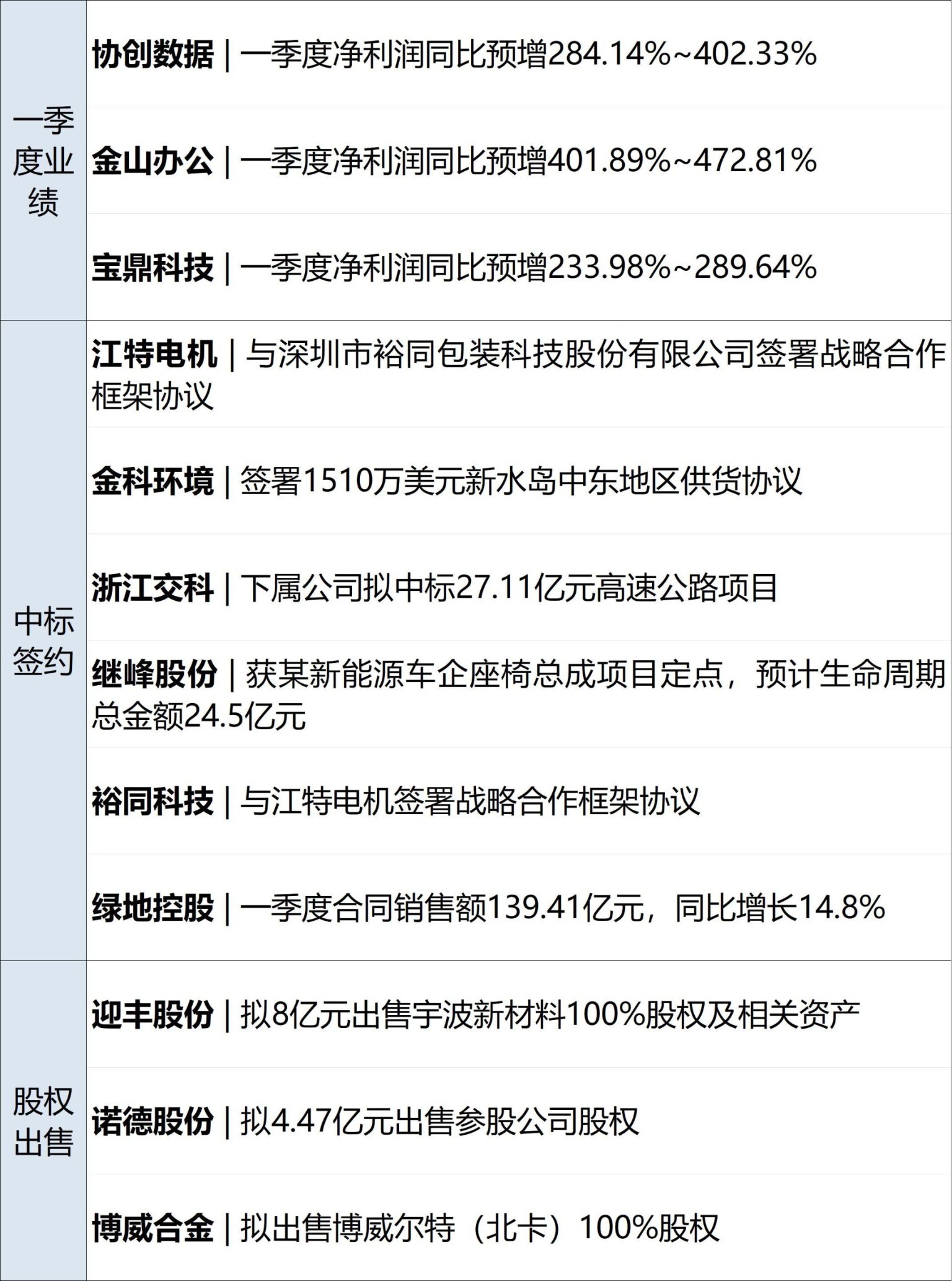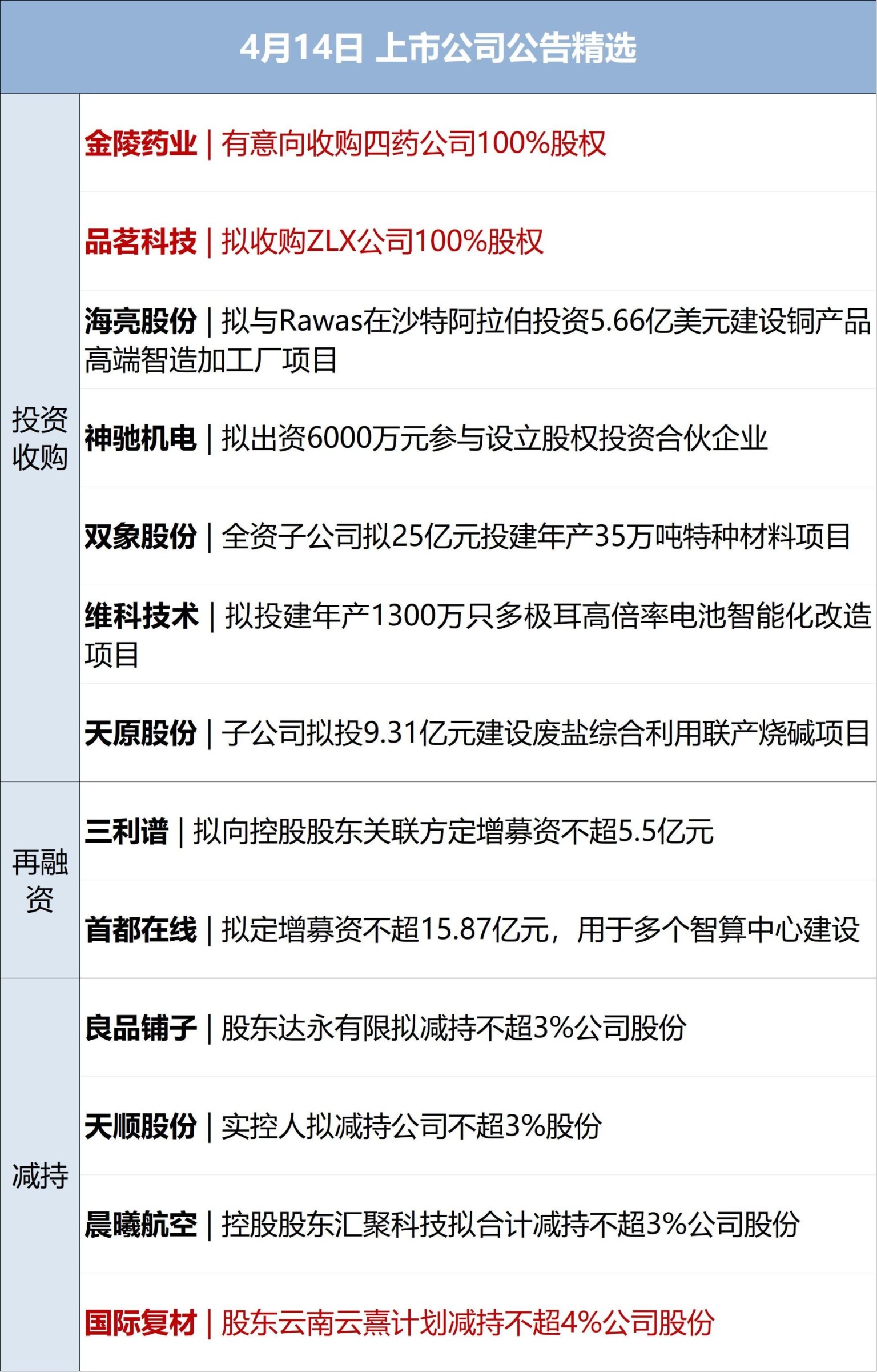 中矿资源(SZ002738,股价82.92元,市值598亿元)、盛新锂能(SZ002240,股价44.86元,市值411亿元):4月13日,锂矿板块震荡走高,盛新锂能、大中矿业等多股收盘涨停。消息面上,津巴布韦政府对锂精矿出口已有所松动,多家中企获得出口配额。对此,中矿资源相关负责人表示:“确有此事,我们获得了20万吨的配额,与公司在当地每个月的产量差不多。”盛新锂能相关负责人表示:“公司获得了津巴布韦锂精矿的出口配额,我们在当地锂精矿的年产能大概为29万吨,津巴布韦政府给的配额可以满足我们生产使用。”(中国证券报)