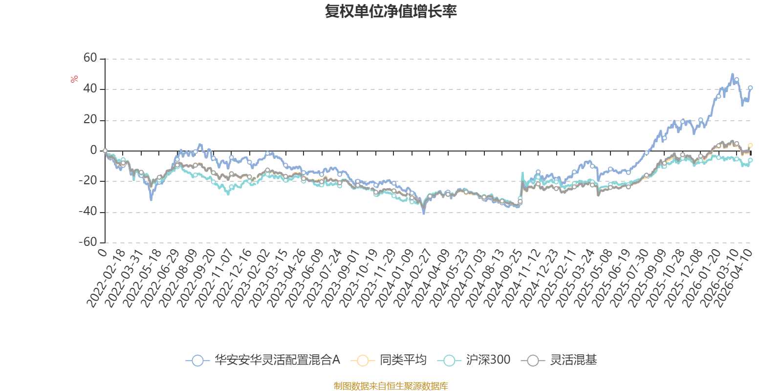 截至4月10日,华安安华灵活配置混合A近三个月复权单位净值增长率为6.34%,位于同类可比基金185/1287;近半年复权单位净值增长率为20.68%,位于同类可比基金109/1286;近一年复权单位净值增长率为69.07%,位于同类可比基金185/1286;近三年复权单位净值增长率为57.31%,位于同类可比基金130/1286。