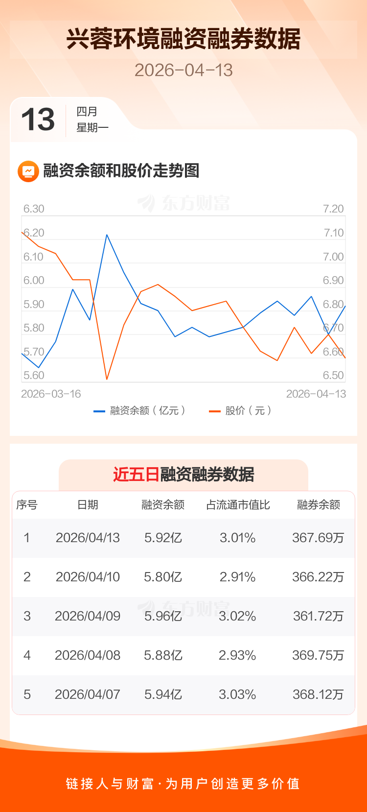 交易所最新数据显示,兴蓉环境于2026年4月13日获融资买入1934.51万元,融资偿还769.04万元,当日融资净买入1165.47万元。目前,该股融资余额5.92亿,占流通市值比例为3.01%。